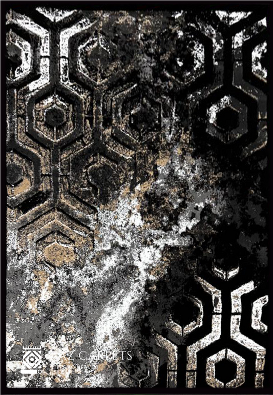 Artistic Splash Pattern Rug | Size: 5ft width x 7.5ft length (150cm x 225cm) | Article #M58BLK-11