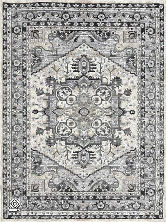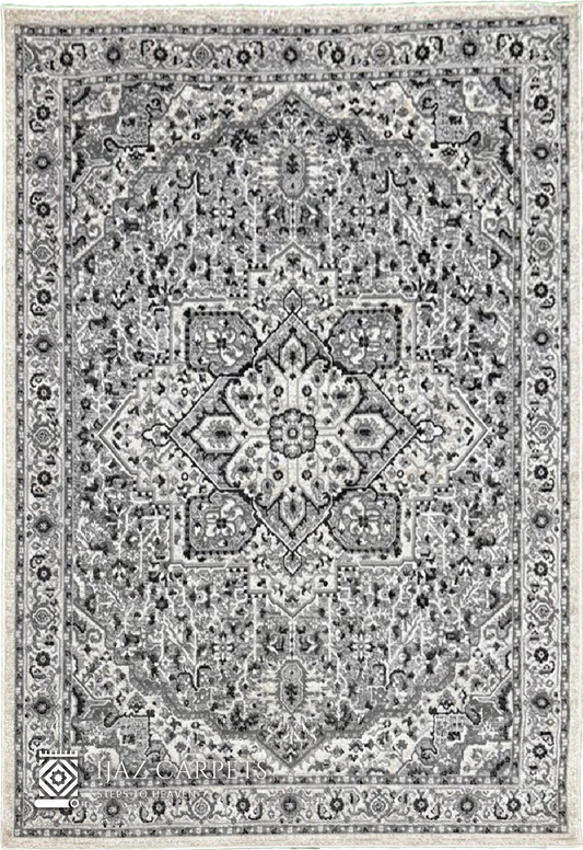 Heritage-Inspired Polypropylene Rug | Size: 5ft width x 7.5ft length (150cm x 225cm) | Article #P58GRY-5