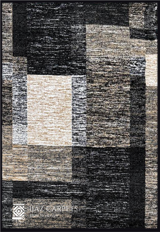 Abstract Box Pattern Rug | Size: 5ft width x 7.5ft length (150cm x 225cm) | Article #M58BLK-2