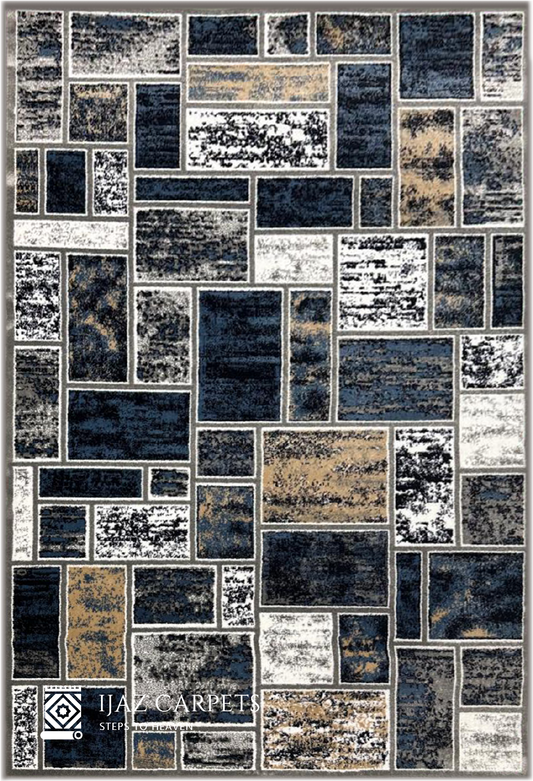 Abstract Box Pattern Rug | Size: 5ft width x 7.5ft length (150cm x 225cm) | Article #M58GRY-12