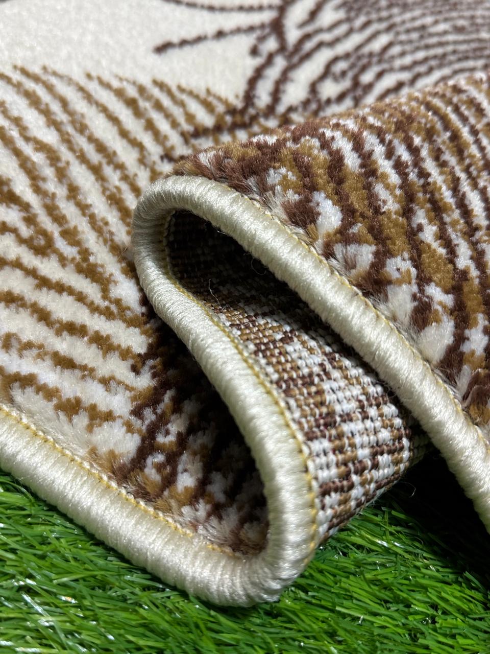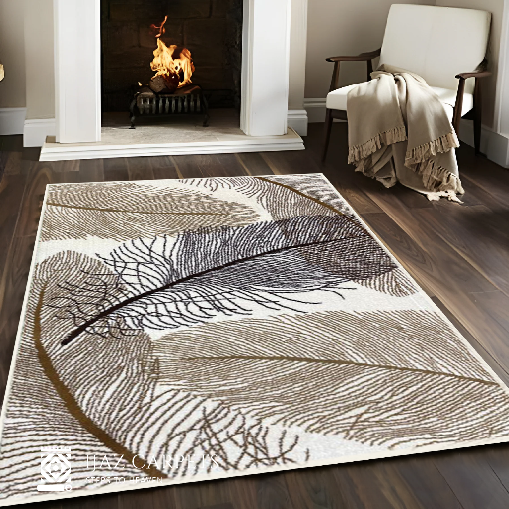 Feather Design White Jute Rug | Size: 3ft width x 5ft length (100cm x 150cm) | Article #M35WHT-2