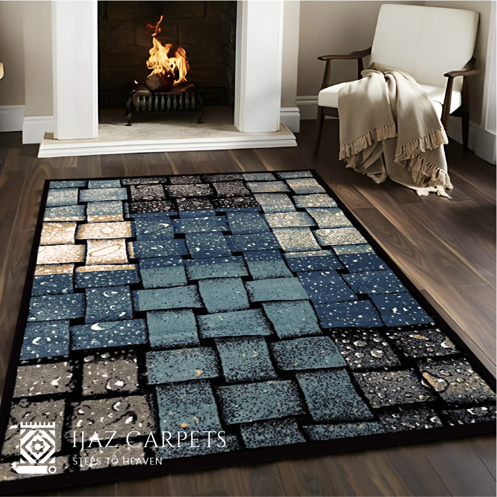 Dynamic Shape Abstract Rug | Size: 4ft width x 5.5ft length (120cm x 170cm) | Article #M46BLU-3