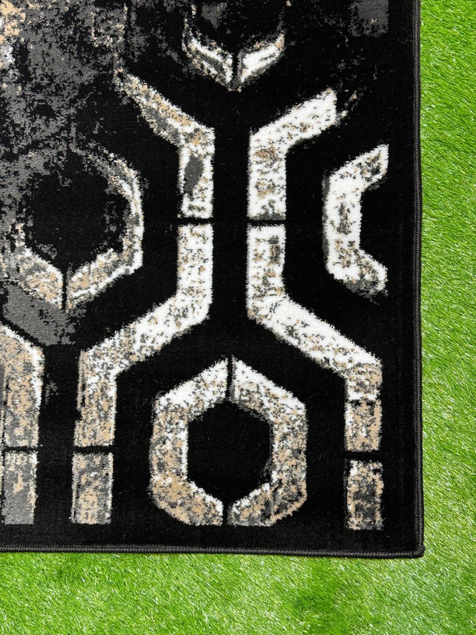 Contemporary Jute Geometrical Rug | Size: 5ft width x 7.5ft length (150cm x 225cm) | Article #M58BLK-3