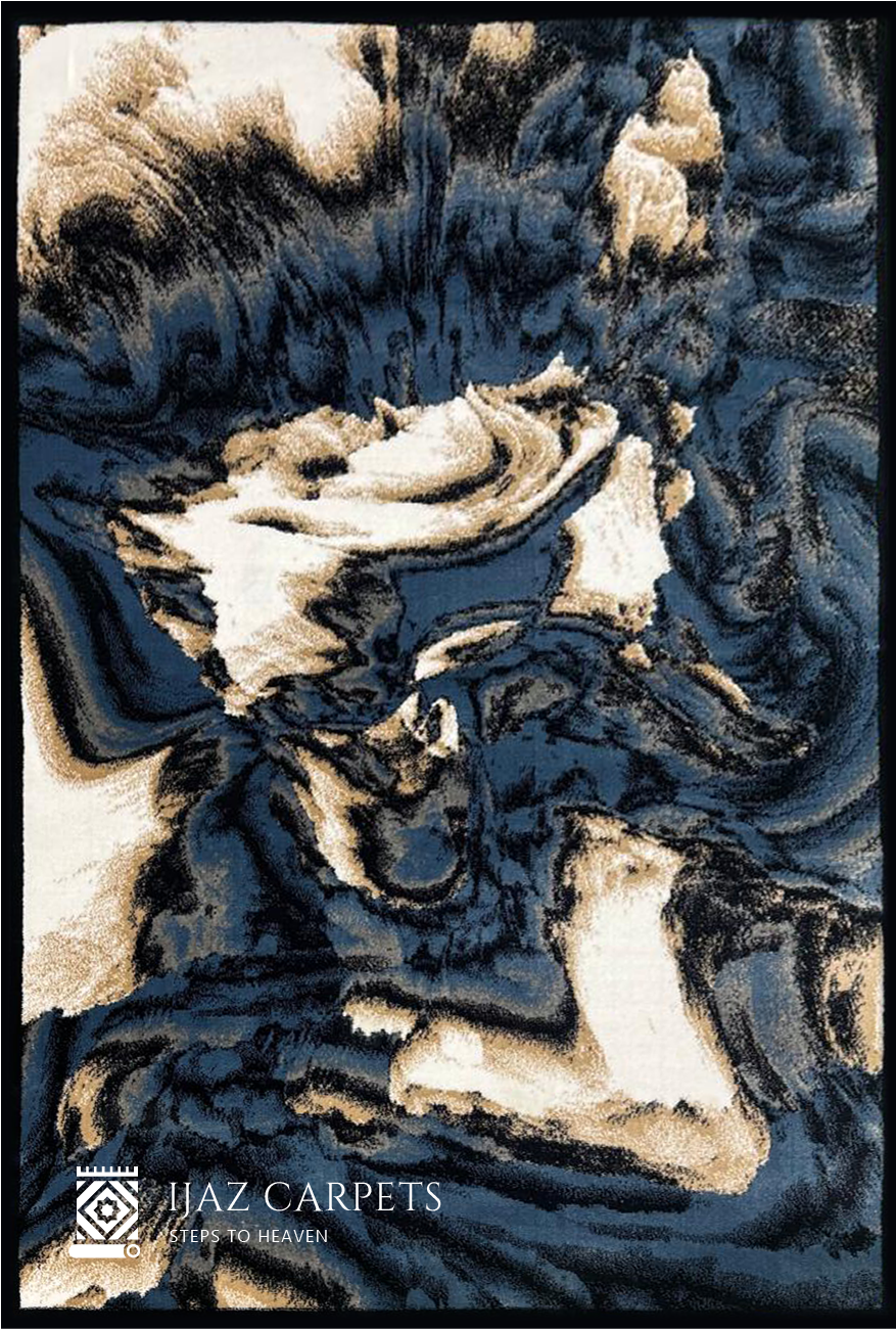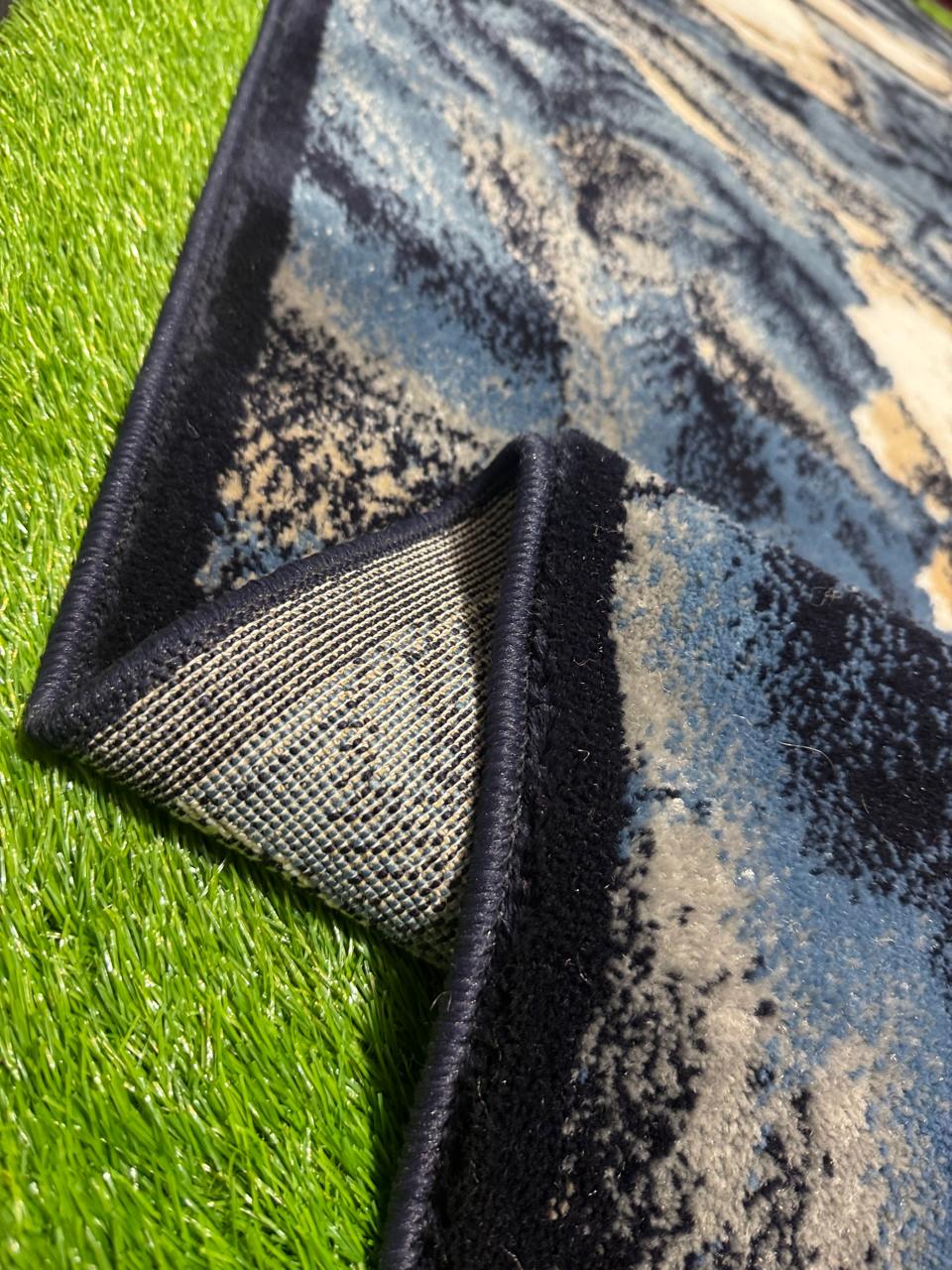 Abstract Jute-Backed Watercolor Rug | Size: 5ft width x 7.5ft length (150cm x 225cm) | Article #M58BLU-12