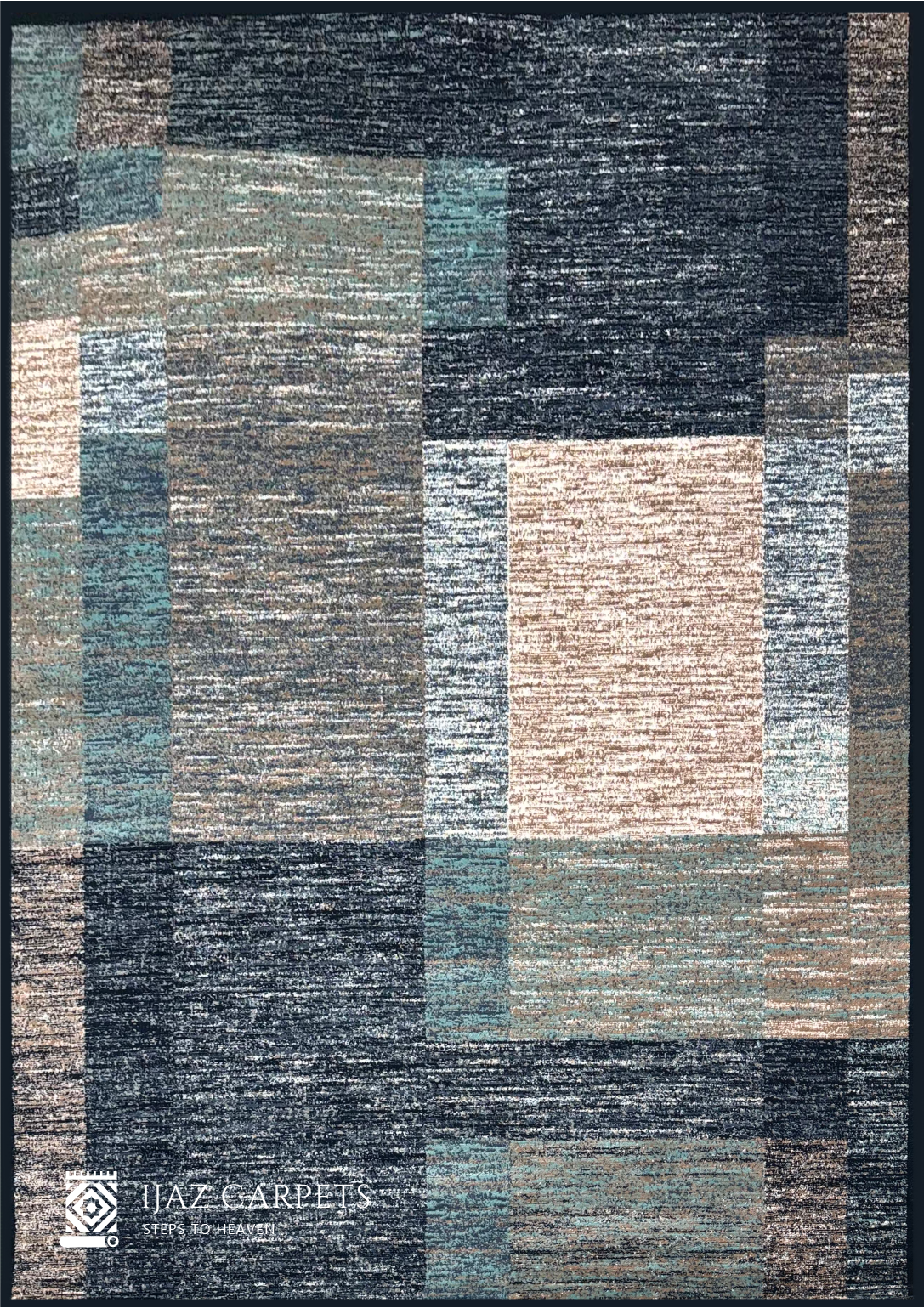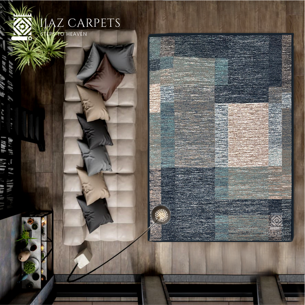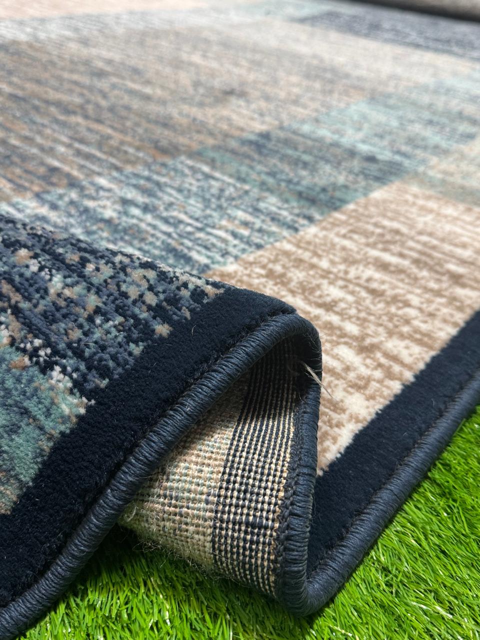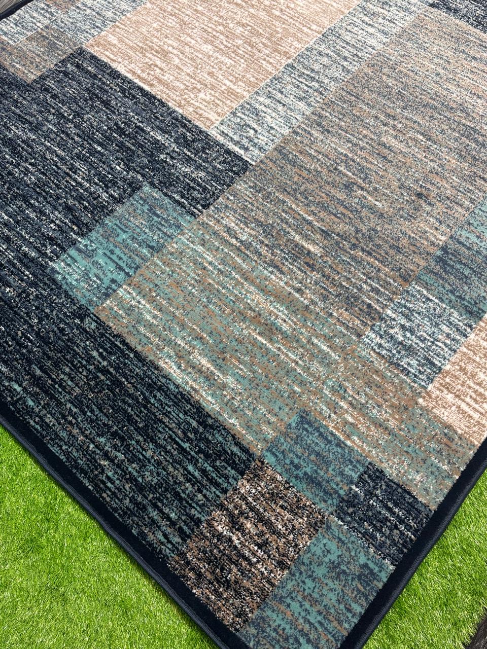 Abstract Box Pattern Rug | Size: 6.6ft width x 9.6ft length (200cm x 290cm) | Article #M710BLU-2