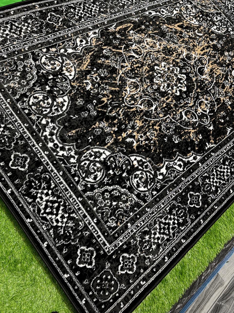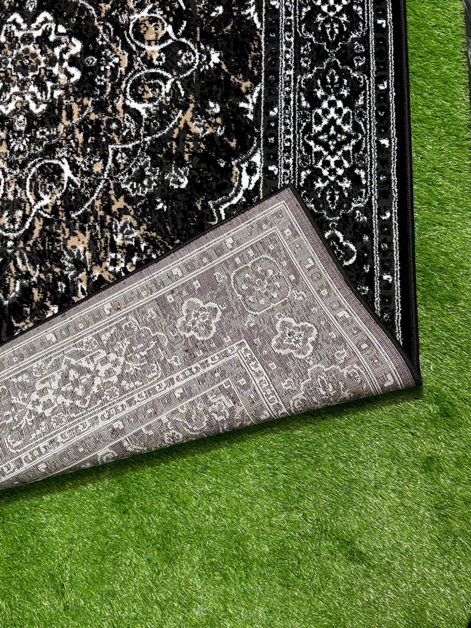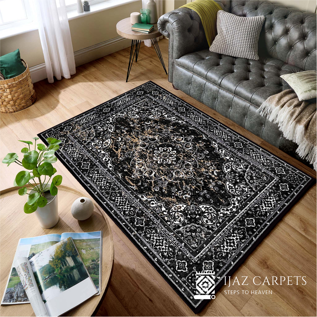 Timeless Polypropylene Floral Rug | Size: 5ft width x 7.5ft length (150cm x 225cm) | Article #P58BLK-13