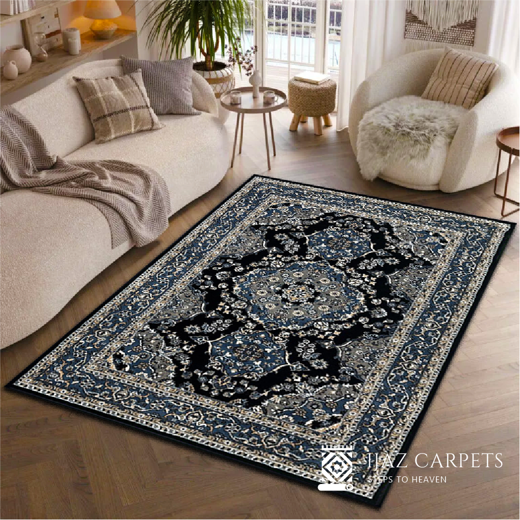 Timeless Polypropylene Floral Rug | Size: 5ft width x 7.5ft length (150cm x 225cm) | Article #P58BLK-14
