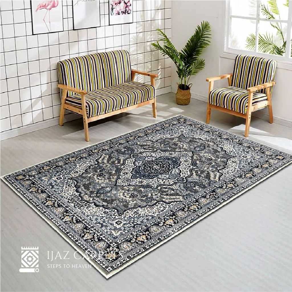 Antique Polypropylene Motif Rug | Size: 5ft width x 7.5ft length (150cm x 225cm) | Article #P58GRY-2