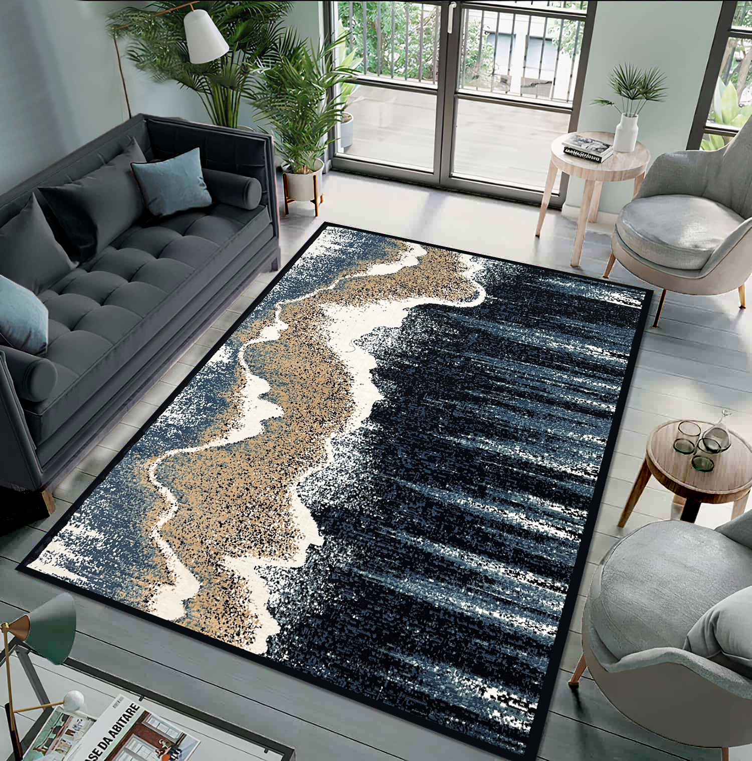 Dynamic Shape Abstract Rug | Size: 4ft width x 5.5ft length (120cm x 170cm) | Article #M46BLU-3